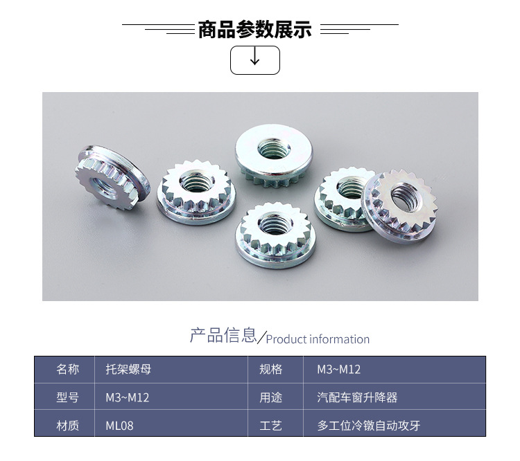 首頁 / 產品中心 / 汽摩配標準件 / 汽摩配標準件之托架螺母