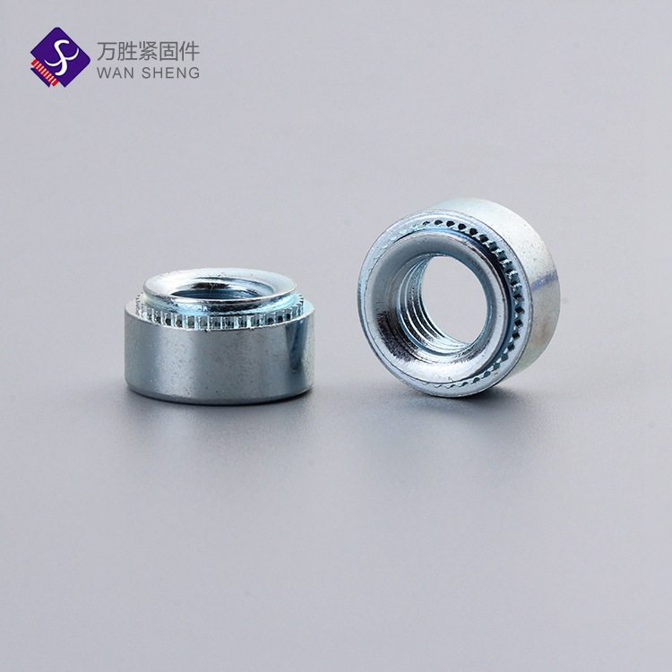 S(CLS)系列壓鉚螺母為安裝內螺紋到精密的金屬板材產品提供了簡單的方法,起到可靠的固定作用,小頁精巧的壓鉚螺母,使板材一邊嵌平加工 ,安裝時,只需將螺母放入金屬板的孔中,以壓力完成鑲嵌緊固功能。同時其又具有以下優點:
